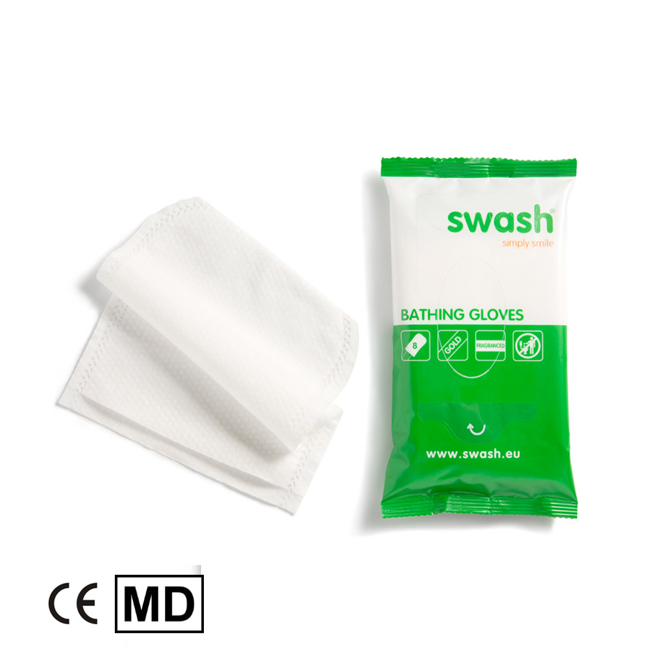 Moist bathing gloves for a complete body wash without soap and water