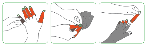 Arion Dactyna helps wearers of medical compression gloves with open fingertips and their caregivers to put them on more gently and easily. Thanks to its unique sliding properties, it reduces friction and helps the gloves slide smoothly over the fingers.