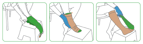 • Für lange Strümpfe oder Strumpfhosen: Arion SlideX, als Ergänzung zu Arion Sim-Slide® verwendet, hilft die Kompressionsversorgung dabei, weiter bis zum Knie bzw. zur Hüfte zu gleiten.