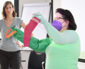 People affected by lymphedema or lipedema need to wear medical compression garments on a daily basis. In some cases, their compression garments cover their entire body. In those cases, their daily struggle putting on and off their extremely tight compression garments can be considerably reduced with the help of our Arion application aids.